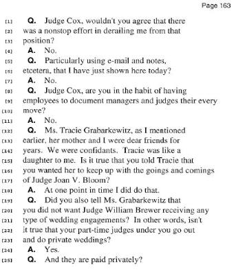 Although Cox denied he habitually has employees to document the every move of managers and judges, his deposition shows otherwise. Page 163: lines 8-18